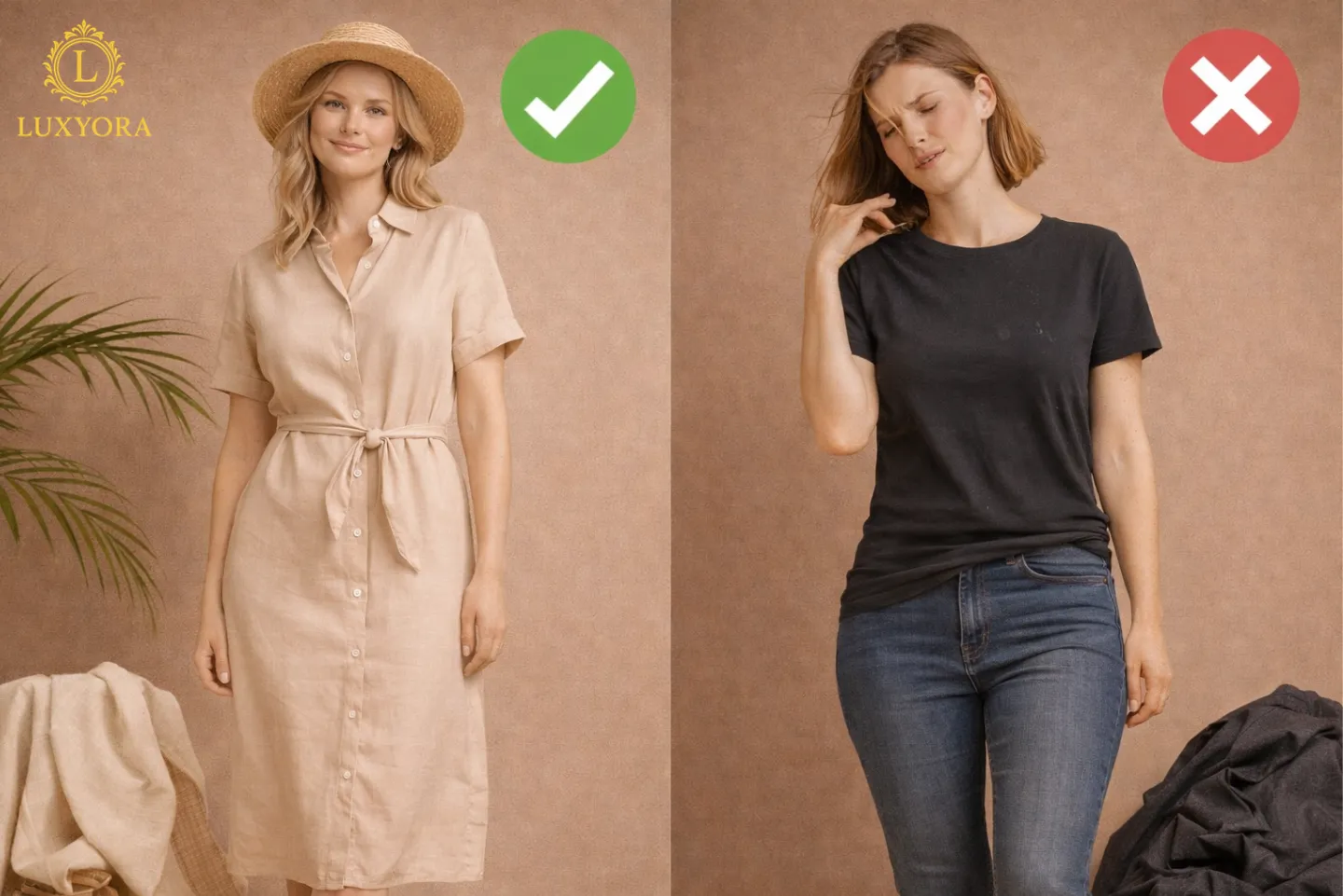 Smart styling note: In humidity, fabric construction matters as much as fiber. Open weaves and looser cuts create air circulation; tight, dense fabrics are basically a portable sauna.