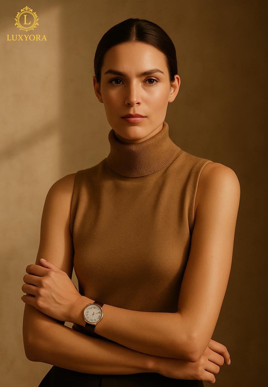 Instead, she chooses timepieces that whisper refinement, minimalist dials, neutral tones, impeccable craftsmanship. Because confidence doesn’t sparkle; it shines.